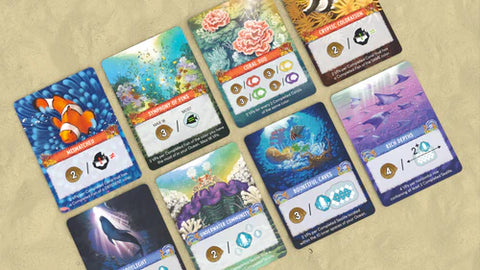Invite other creatures to enrich your ocean, trying to match the distinct scoring requirements of the ecosystem cards in order to score the most points.