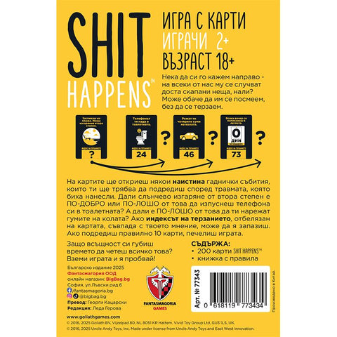 Нека си го кажем направо - на всеки от нас му се случват доста скапани неща, нали? Може обаче да им се посмеем, без да се терзаем. На картите ще откриеш някои наистина гаднички събития, които ти ще трябва да подредиш според травмата, която биха нанесли. Дали слънчево изгаряне от втора степен е ПО-ДОБРО или ПО-ЛОШО от това да изпуснеш телефона си в тоалетната? А дали е ПО-ЛОШО от това да ти нарежат гумите на колата? Ако индексът на терзанието, отбелязан на картата, съвпада с твоето мнение, може да я запазиш. Ако подредиш правилно 10 карти, печелиш играта.
