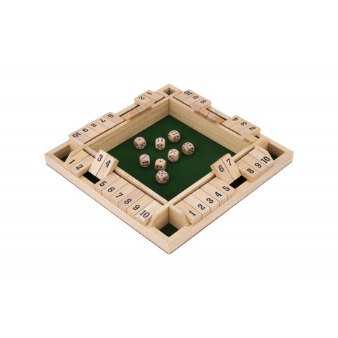 Shut the Box е семейна игра, включваща 12 зара и квадратна арена, облицована с филцов плат. От всяка страна на арената има 10 номерирани клавиша от 1 до 10.