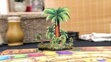 In Camel Up, up to eight players bet on five racing camels, trying to suss out which ones will place first and second in a quick race around a pyramid. The earlier you place your bet, the more you can win — should you guess correctly, of course. Camels don't run neatly, however, sometimes landing on top of another one and being carried toward the finish line. Who's going to run when? That all depends on how the dice come out of the pyramid dice shaker, which releases one die at a time when players pause from their bets long enough to see who's actually moving!